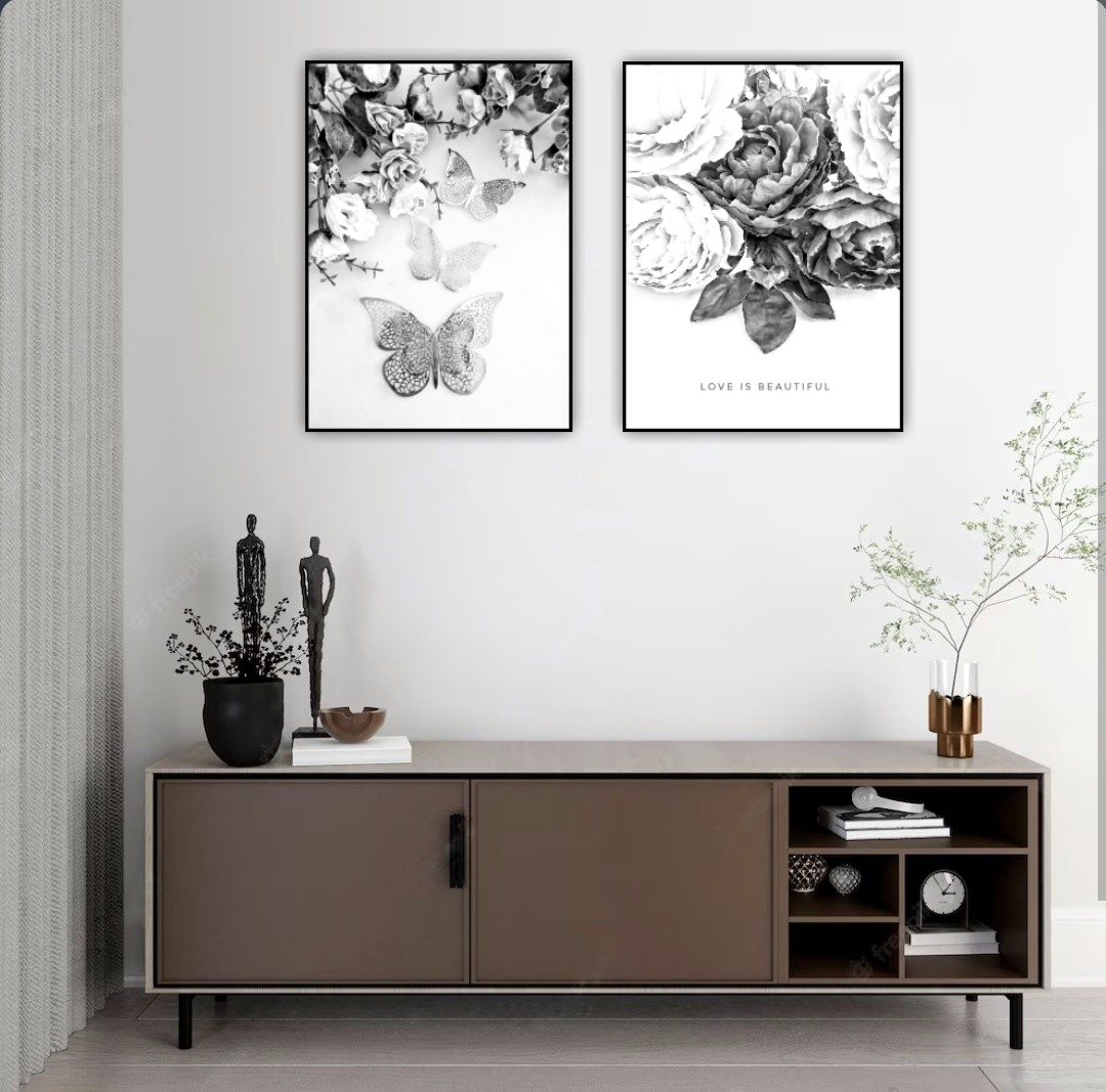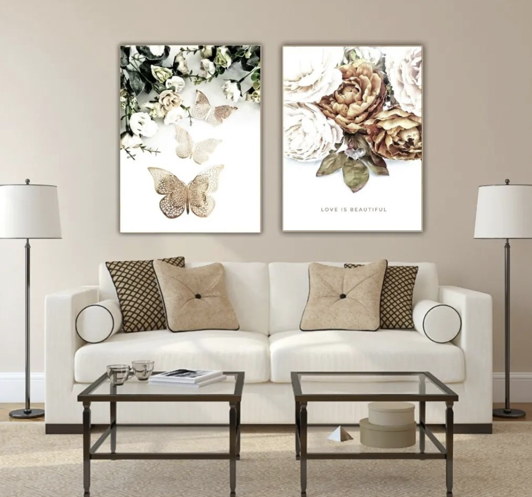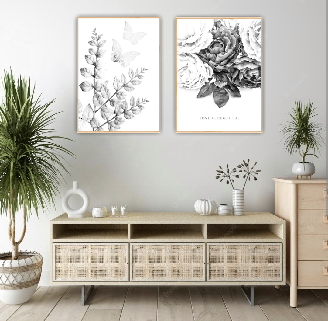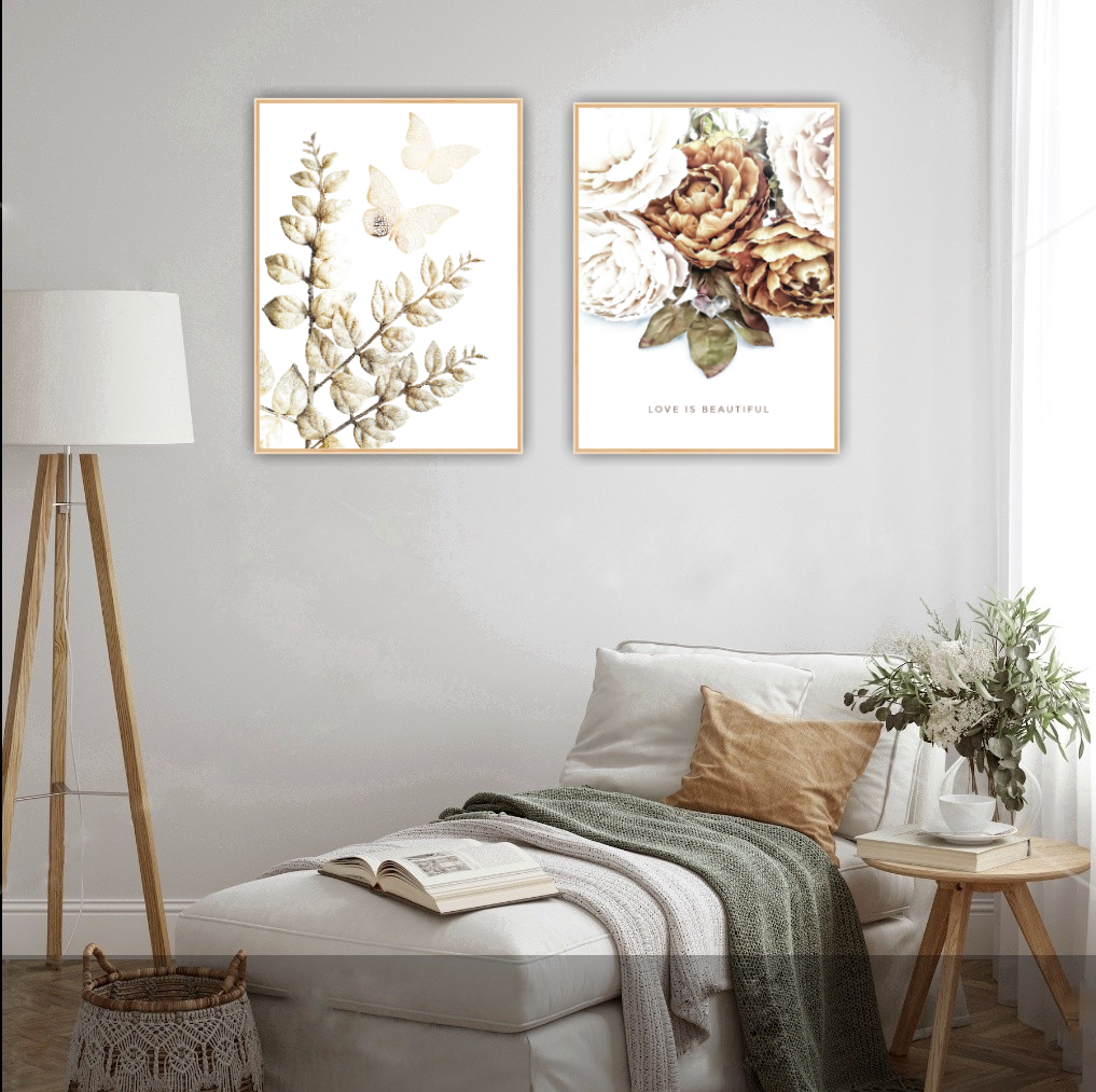 Ett vackert botaniskt motiv med vackra pioner och ett symboliskt hjärta med texten "Love is Beautiful". En romantisk poster som ger en varm o inbjudande känsla. Kombinera den gärna tillsammans med andra motiv i samma färgtoner för en fint och harmoniskt intryck. Se miljöbilder för inspiration.