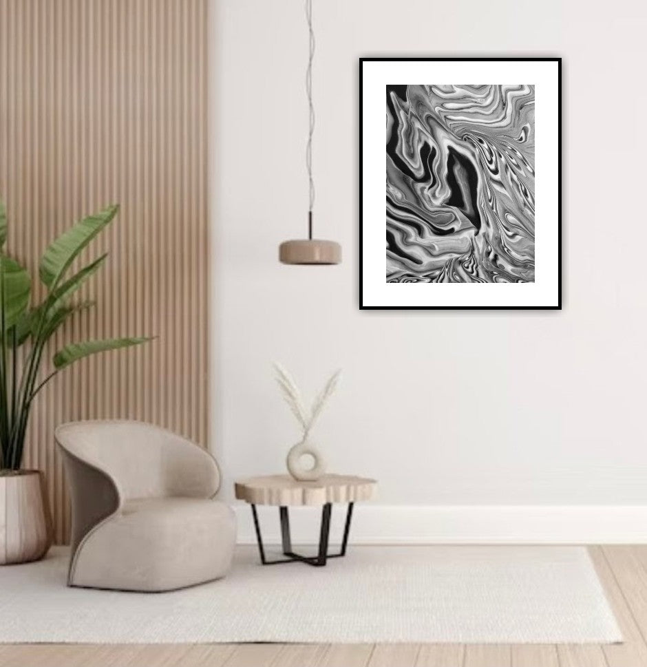 Abstrakt konst med slingrande former och linjer som skapar en känsla av rörelse och harmoni. Ger ditt hem ett elegant och modernt intryck. Passar såklart att vända vilket håll man önskar och är väldigt fin att kombinera tillsammans med med mina andra abstrakta posters i samma serie. Se miljöbilder för inspiration.