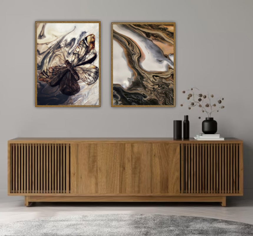 Ett läckert motiv i abstrakt konst i lugna jordnära färger. Kombinera gärna tillsammans med andra posters i samma färgtoner och skapa en snygg och stilren tavelvägg. Se miljöbilder för inspiration.