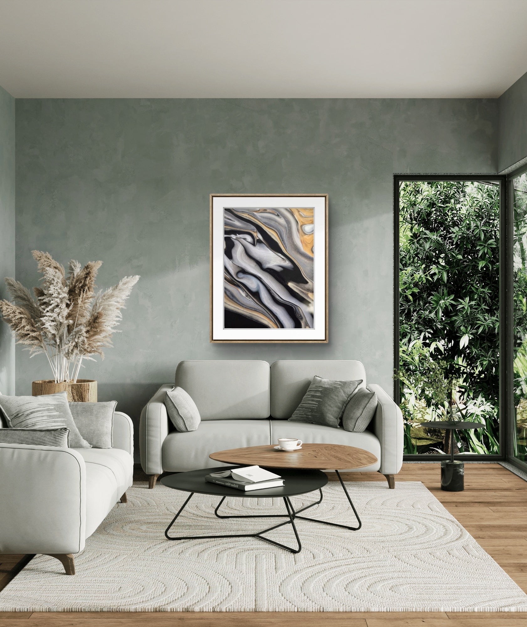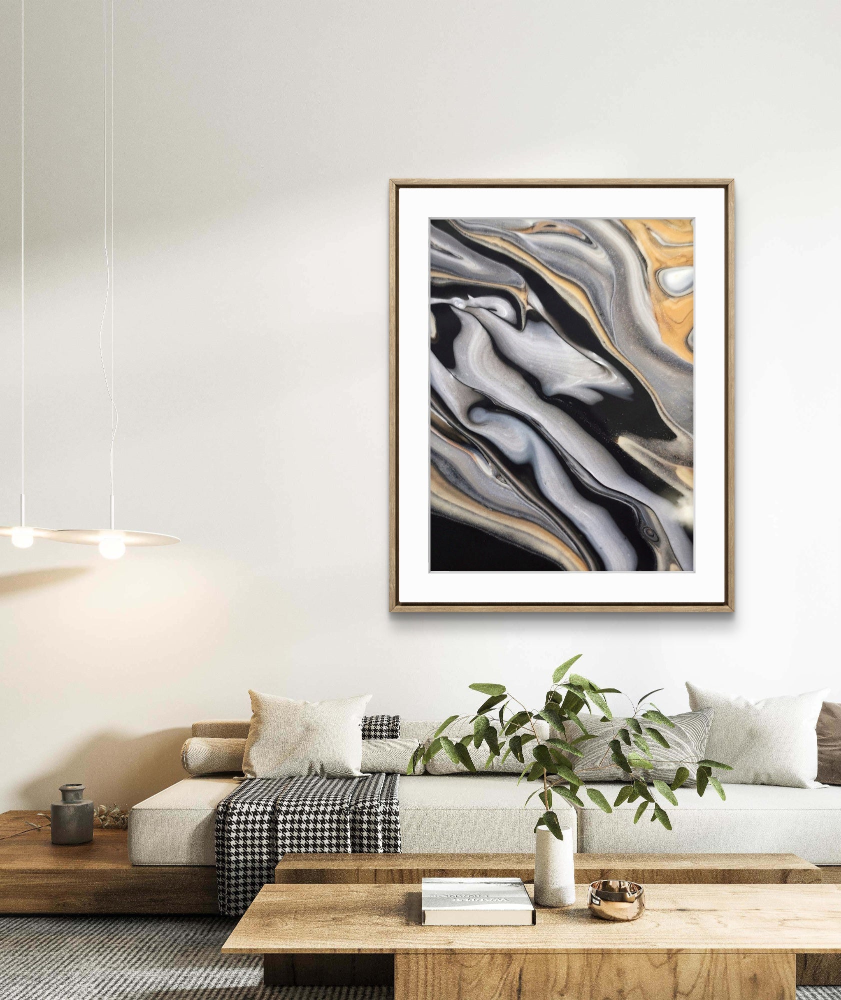 En tidlös och modern poster i abstrakt konst med böljande färger och former. Kombinera gärna tillsammans med andra posters i samma färgtoner för en snygg och stilren tavelvägg. Se miljöbilder för inspiration.