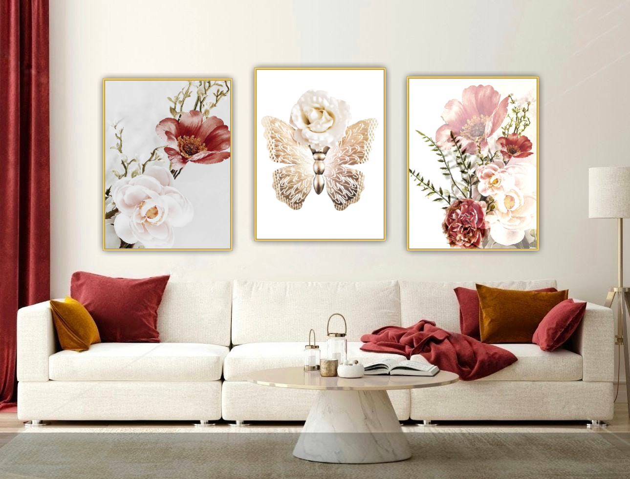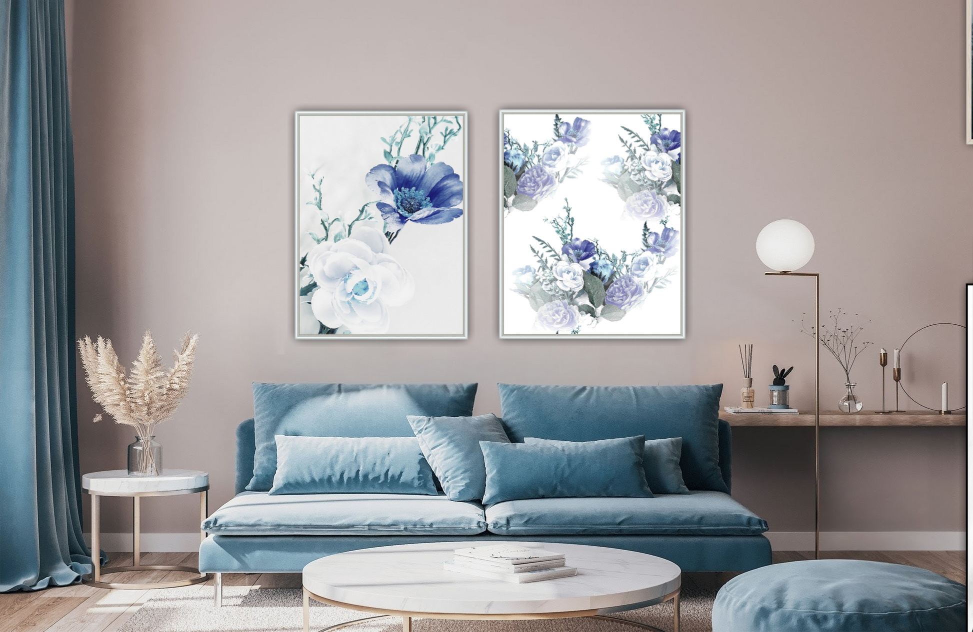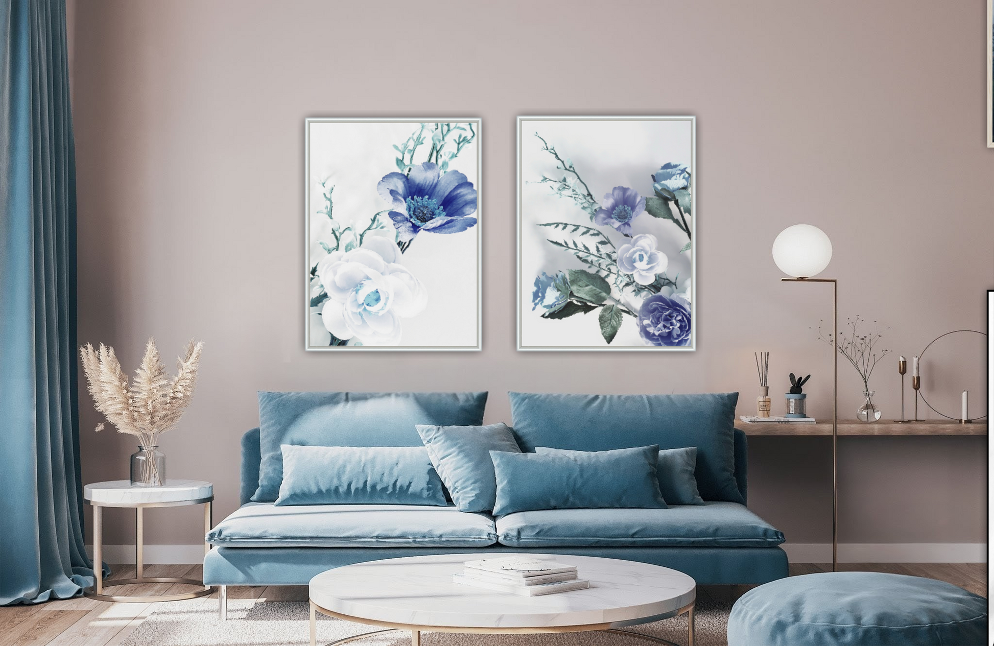 Ett botaniskt motiv av vackra stora blommor. Blir ett härligt blickfång i rummet. Botaniska motiv ger en lugn och harmonisk känsla. Kombinera den gärna tillsammans med andra botaniska motiv i samma färgtoner för en fin och inbjudande helhet. Se miljöbilder för inspiration.