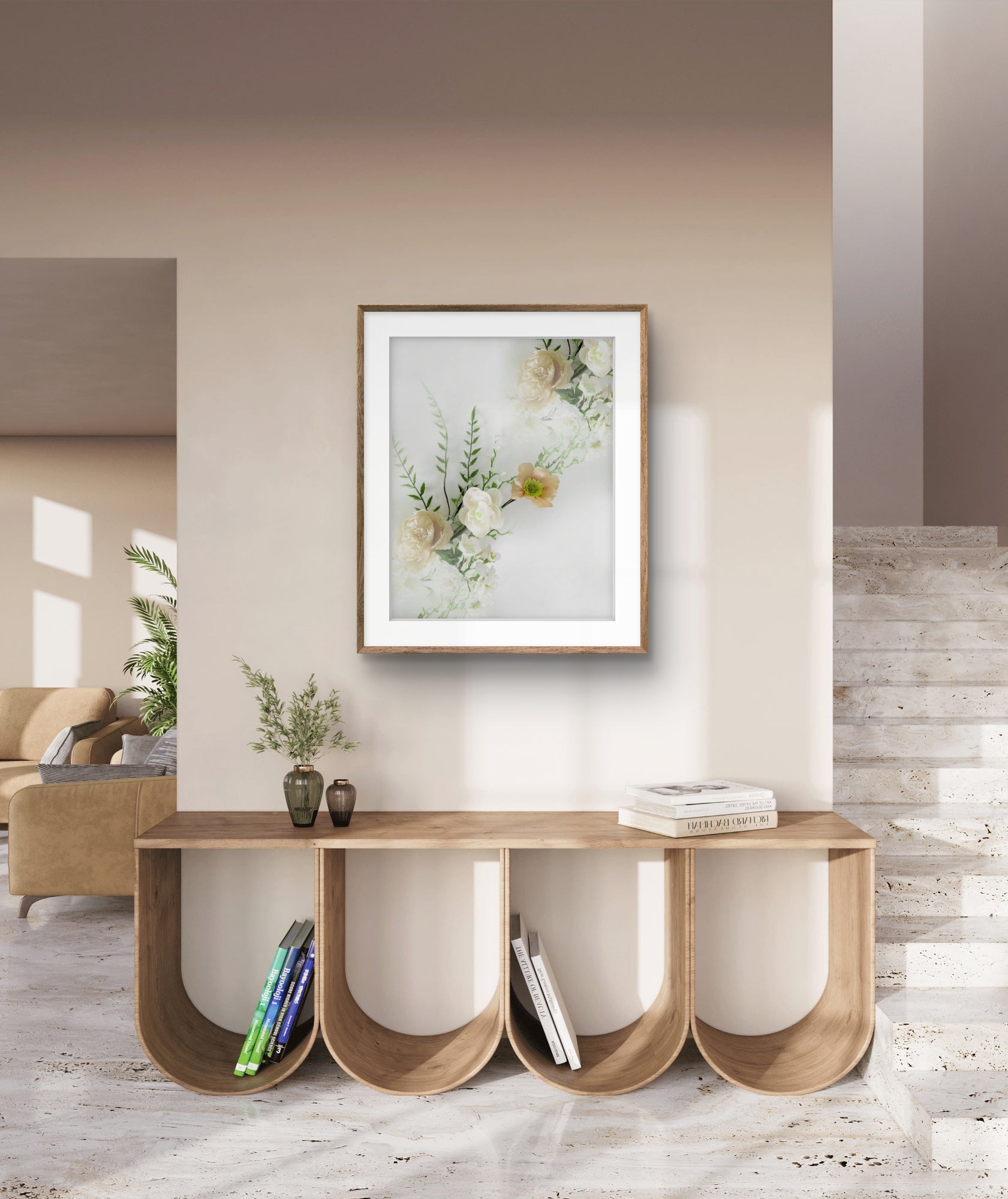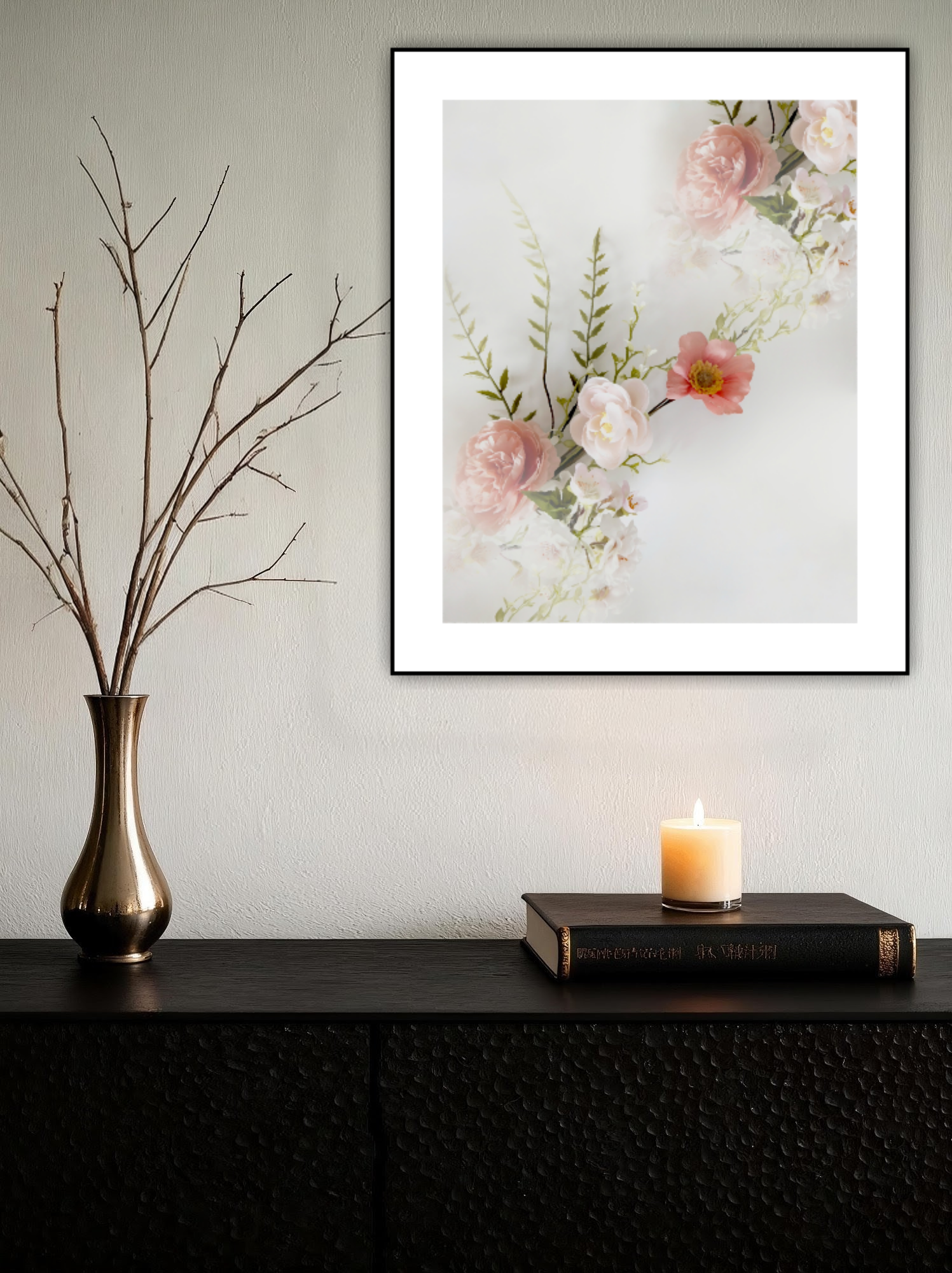 Ett romantiskt motiv av blommor och kvistar som går som en kedja över motivet. Botaniska motiv ger en lugn och harmonisk känsla i rummet. Kombinera den gärna tillsammans med andra botaniska motiv i samma färgtoner för en härlig och inbjudande helhet. Se miljöbilder för inspiration.