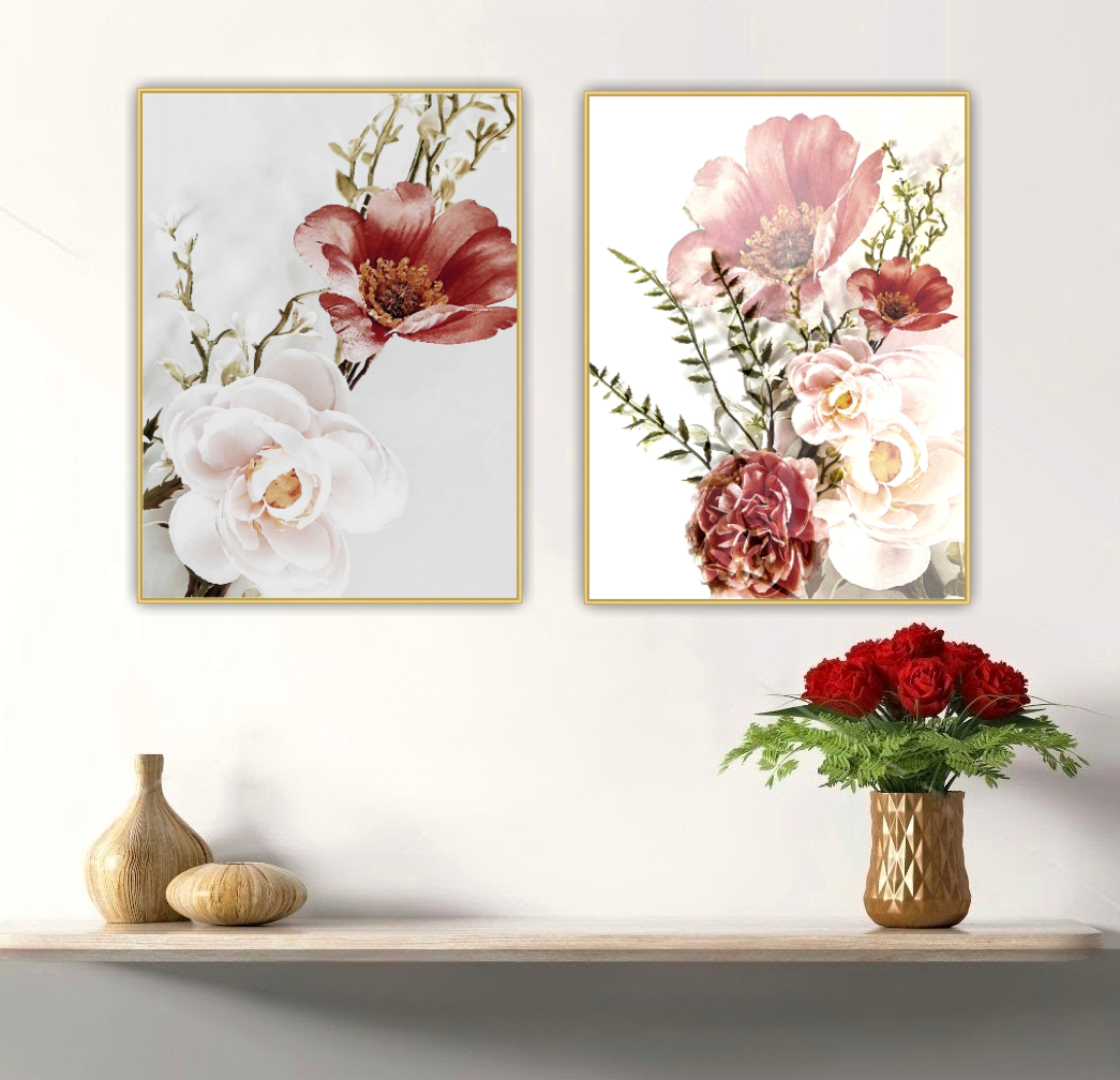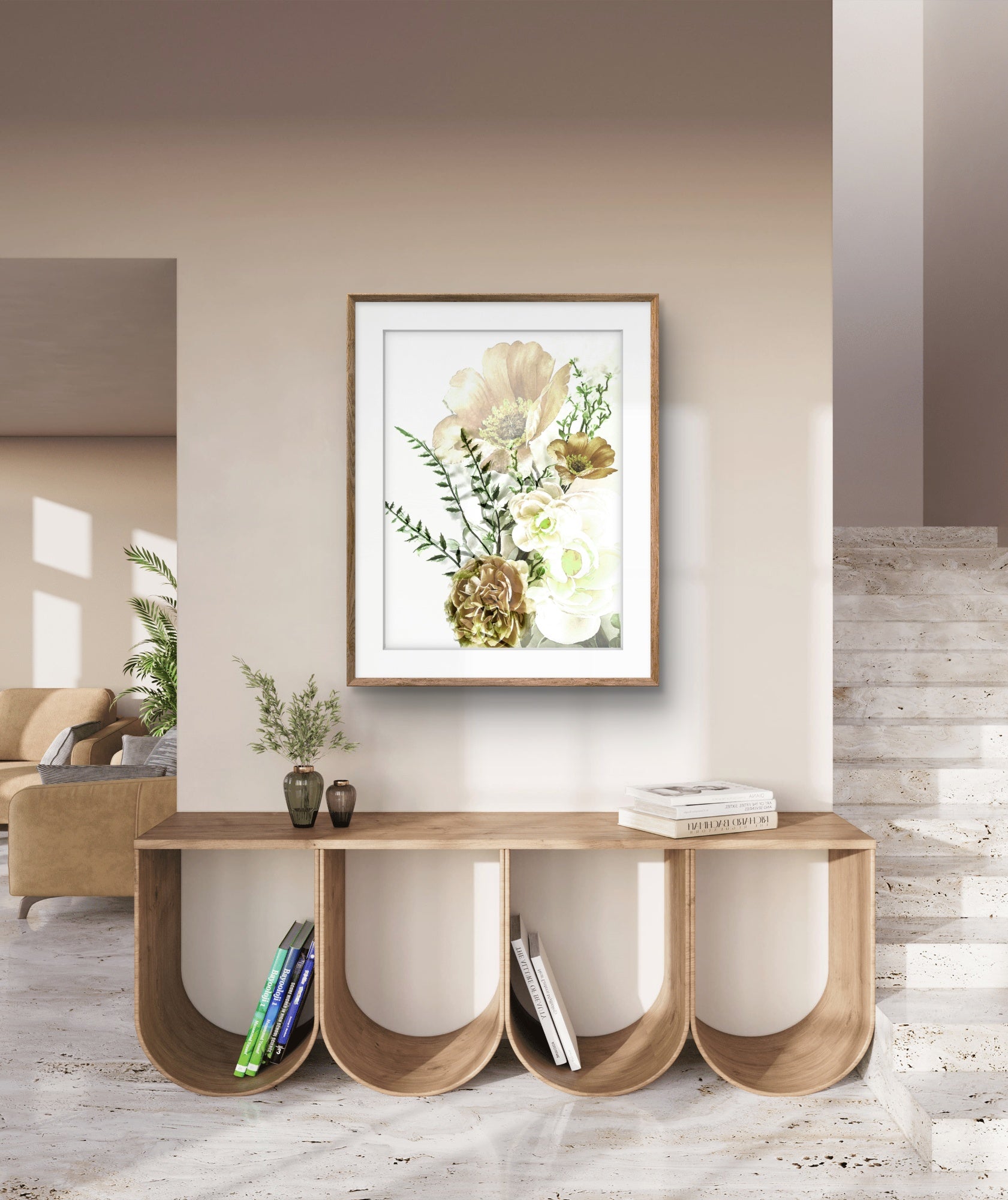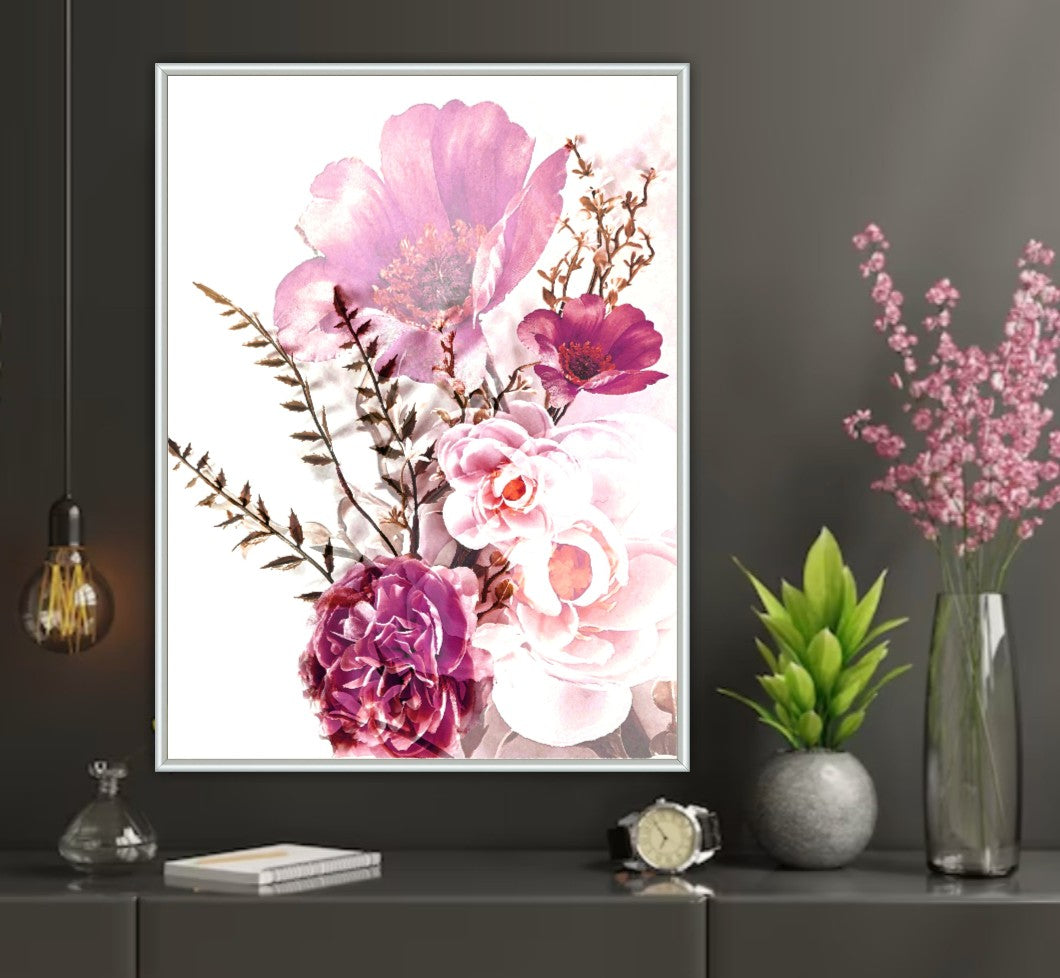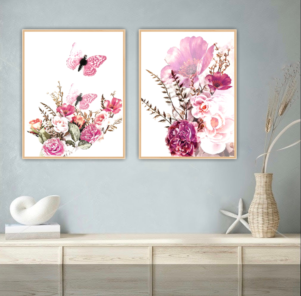 Ett botaniskt motiv av vackra blommor och kvistar mot en ljus bakgrund. Botaniska motiv ger en lugn och harmonisk känsla i rummet och denna poster blir ett härligt blickfång. Kombinera tillsammans med andra botaniska motiv i samma färgtoner för en vacker helhet. Se miljöbilder för inspiration.