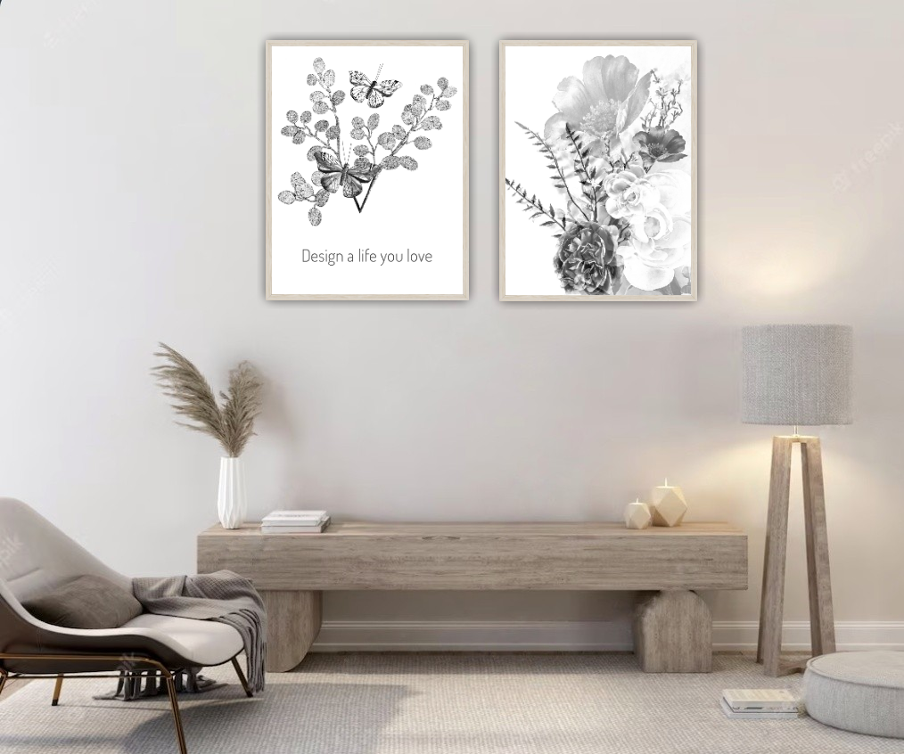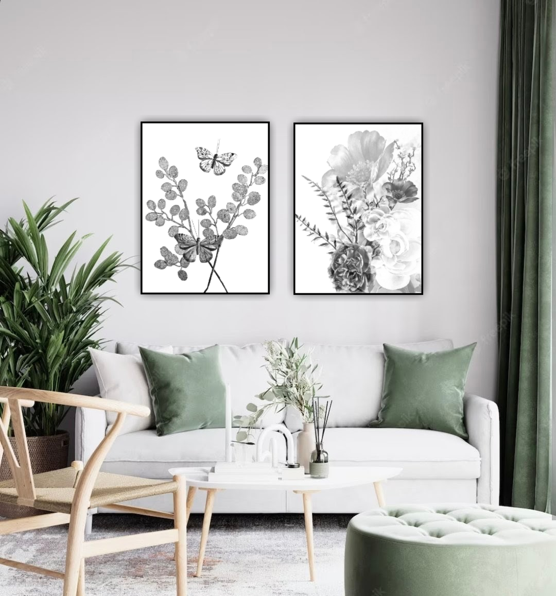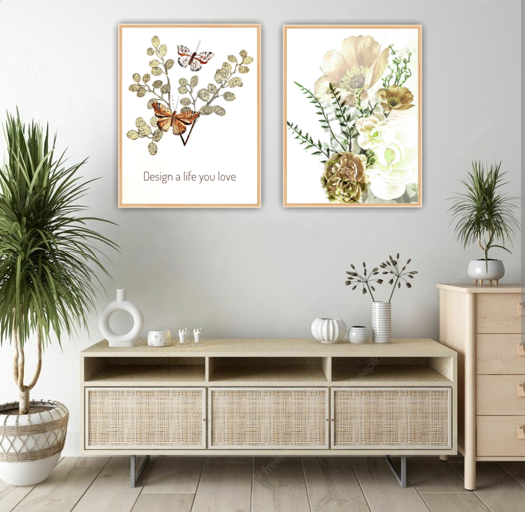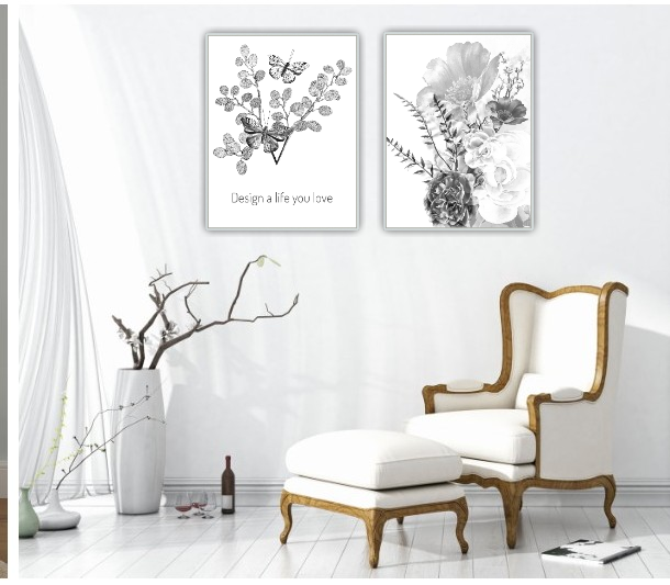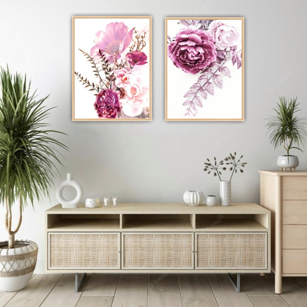 Ett botaniskt motiv av vackra blommor och kvistar mot en ljus bakgrund. Botaniska motiv ger en lugn och harmonisk känsla i rummet och denna poster blir ett härligt blickfång. Kombinera tillsammans med andra botaniska motiv i samma färgtoner för en vacker helhet. Se miljöbilder för inspiration.